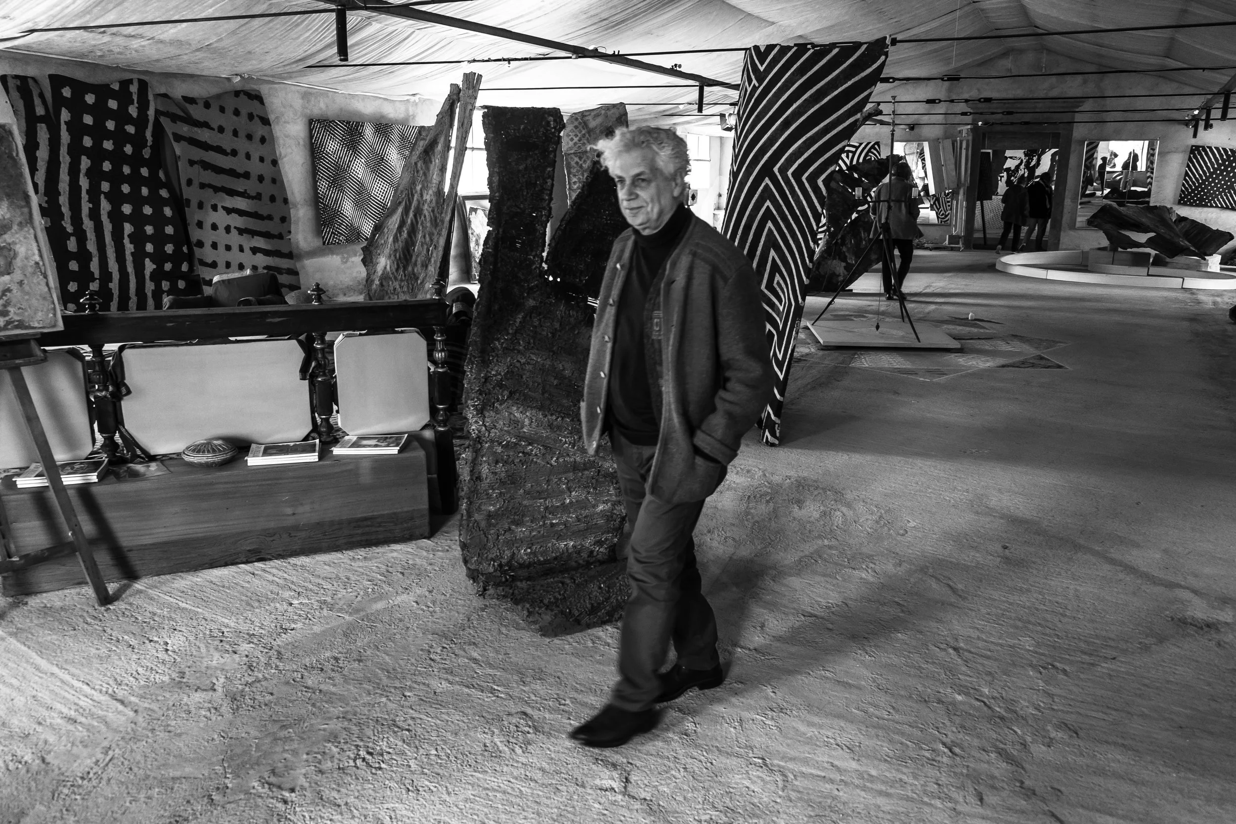 Thus it was with deep gratitude and respect that I accepted the offer of Fabrizio Ruggiero to visit his studio in the hills of Tuscany. Fabrizio is a gifted artist who has explored many different forms of expression. Trained as an architect, he creates textiles for pret-à-porter collections, specializes in fresco painting, and sculpts in a variety of mediums. Befitting such a mind, Fabrizio’s studio space outside Anghiari, Italy, is a massive former agricultural shed. Both a living and working space, it is filled with completed works, collected works, and work in progress.